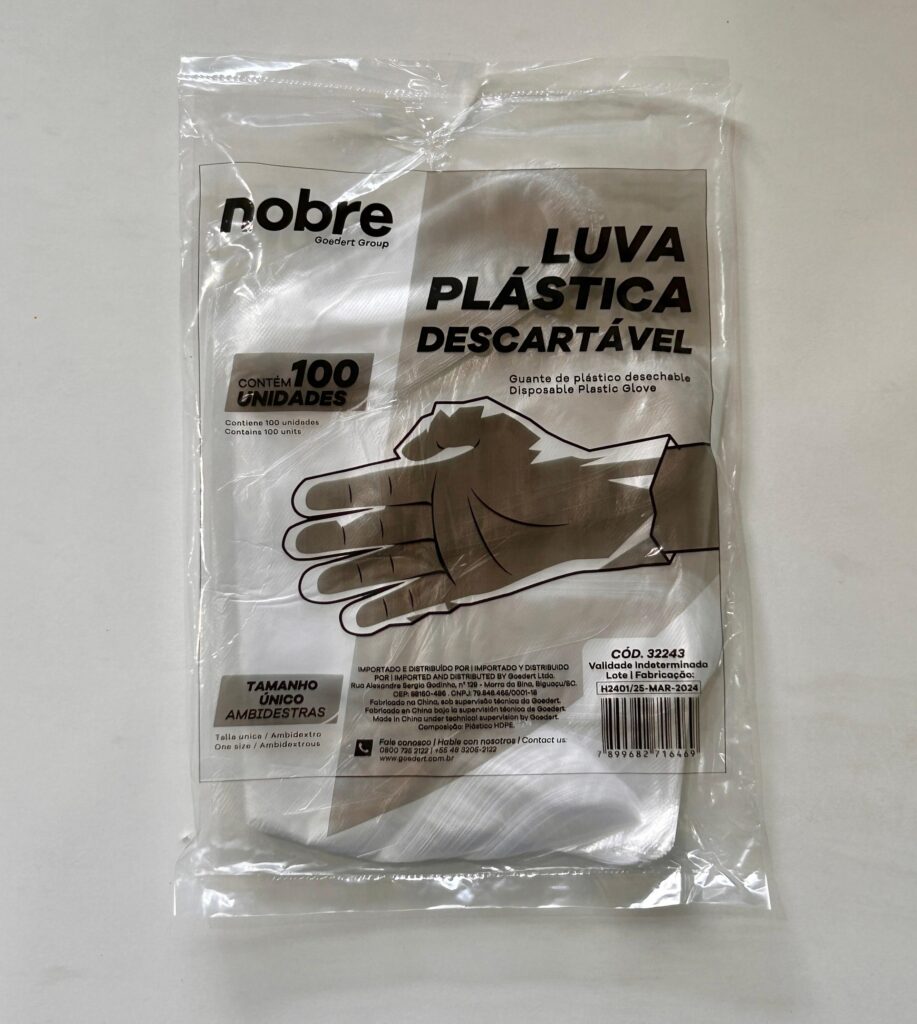 Luva plástica descartável